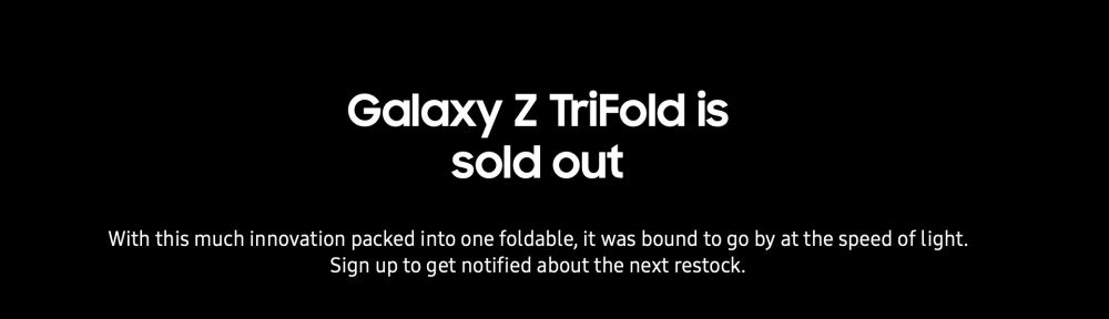 Samsung toi Galaxy Z TriFoldin myyntiin Yhdysvalloissa 30. tammikuuta. Nyt Samsungin verkkosivulla ostopainikkeen paikalla lukee vain ”Sold out” ja ”Notify me”.