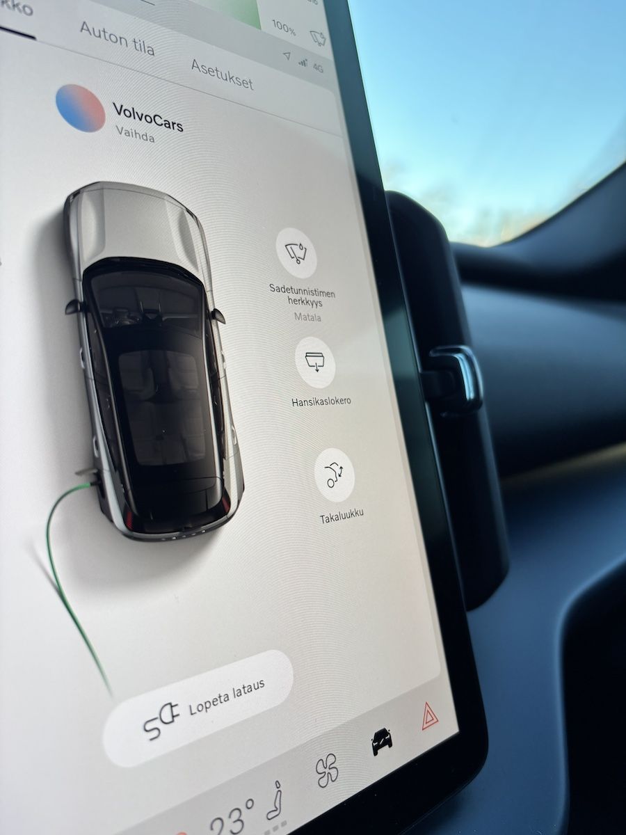 Kaipaisimme edelleen EX30:n ratin taakse toista näyttöä, josta voisi tarkkailla ajamisen keskeisiä tietoja. Nyt kaikki informaatio on koottu 12-tuumaiselle kosketusnäytölle, jonka aloitusnäkymästä on paikoin vaikea löytää haluamansa tiedon. Osa informaatiosta on niin pienellä fontilla, että sen tiiraileminen ajon aikana voi jopa vaarantaa liikenneturvallisuuden.